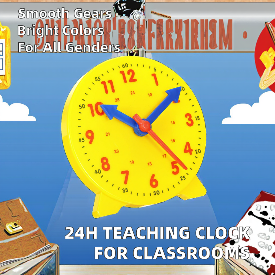 นาฬิกาสอนเวลาแบบอะนาล็อก 24 ชั่วโมง สำหรับห้องเรียน ทำจากพลาสติก พร้อมเข็มนาฬิกา 3 เข็ม และระบบการเคลื่อนที่