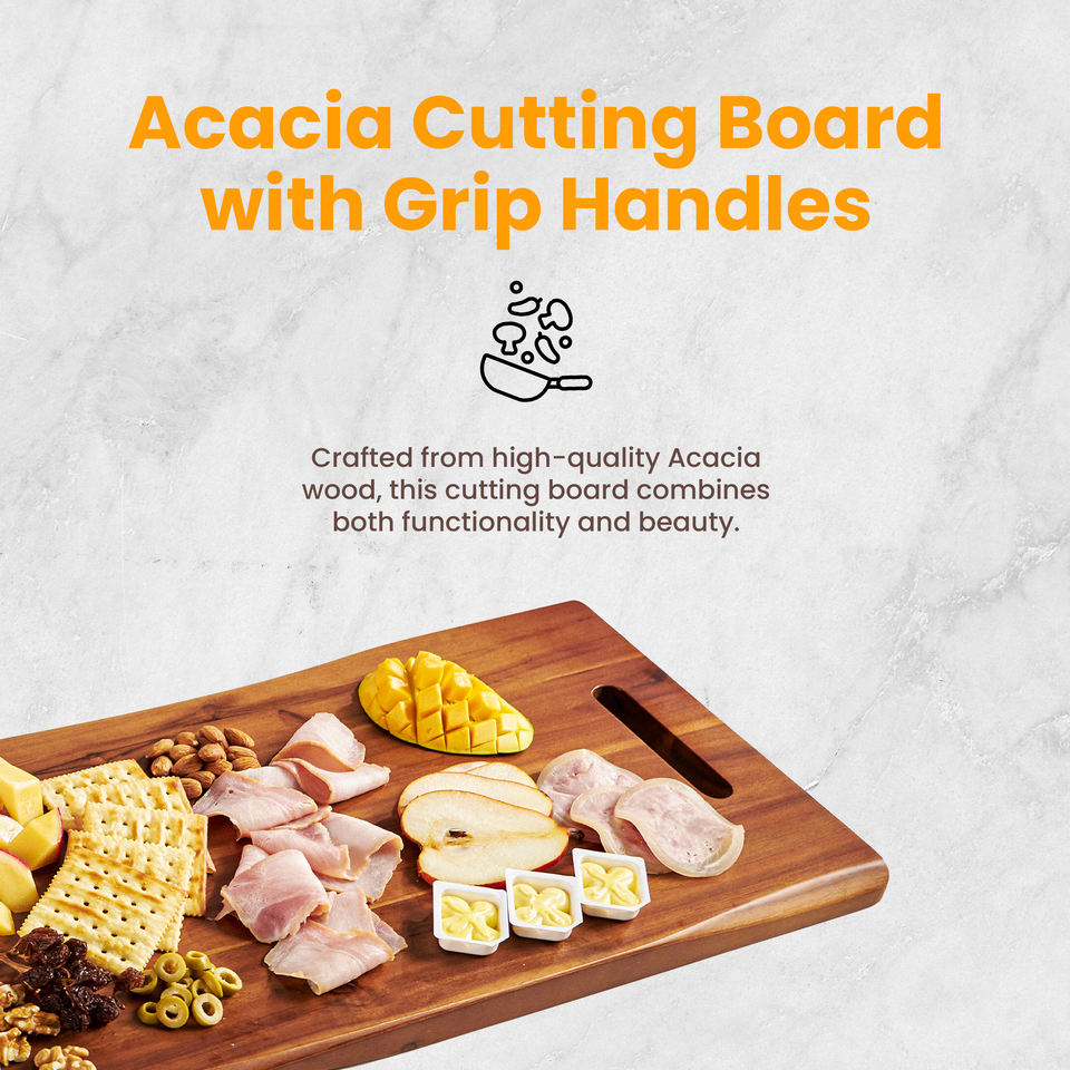 ถาดเสิร์ฟไม้ไผ่และไม้กระถินขนาด 24 นิ้ว พร้อมที่จับ ดีไซน์เรียบง่าย ทนทาน เป็นมิตรต่อสิ่งแวดล้อม เหมาะสำหรับใช้ในห้องครัว/ห้องนั่งเล่น