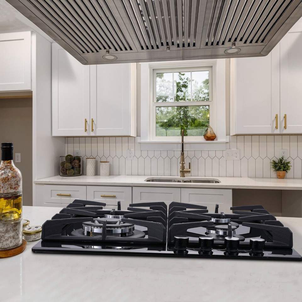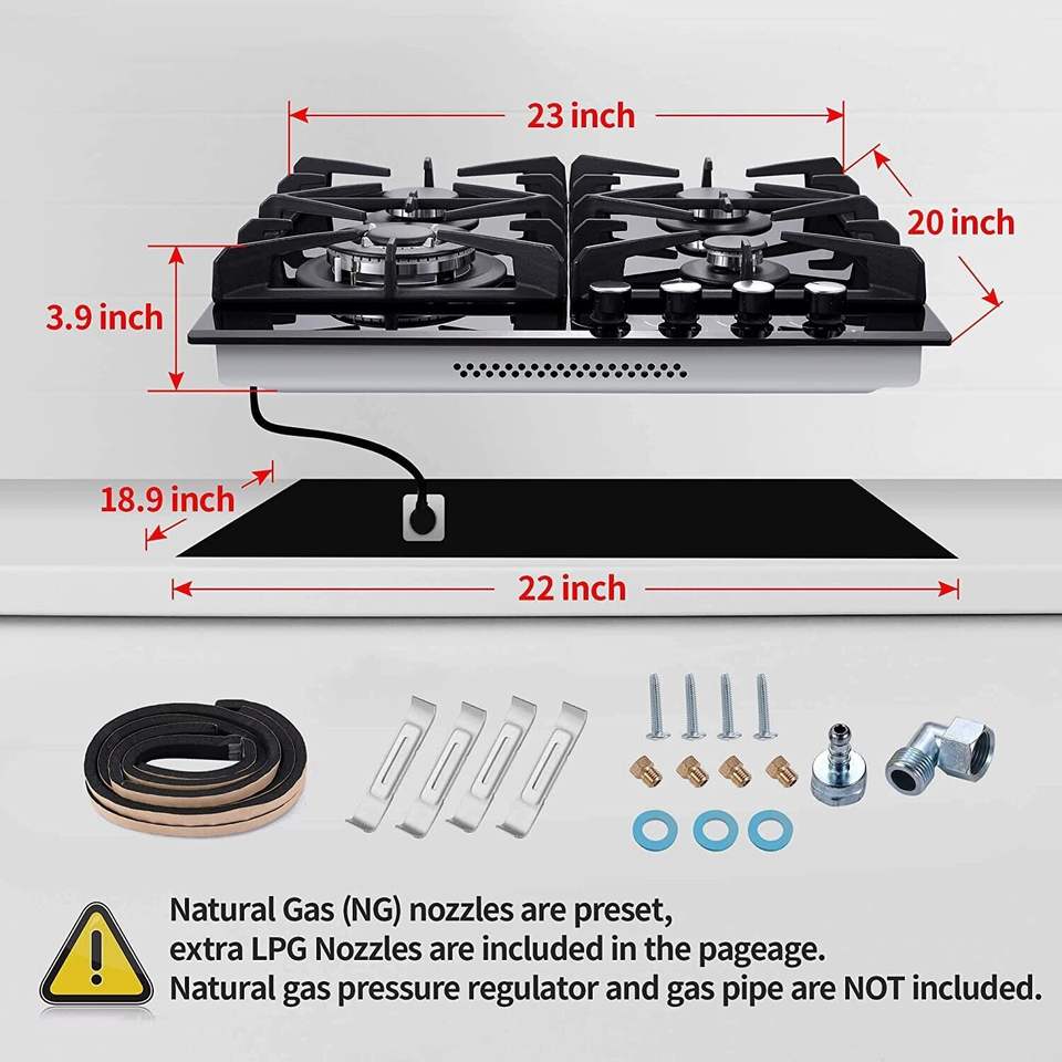 เตาแก๊สแบบฝังขนาด 24 นิ้ว กระจกนิรภัยสีดำ พร้อมหัวเตา 4 หัว ใช้ได้ทั้งแก๊สธรรมชาติ/LPG ดีไซน์หรูหรา