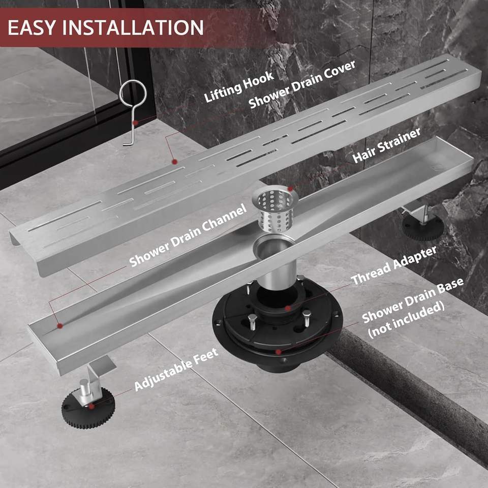 24นิ้ว304ทันสมัยตะแกรงระบายน้ำสแตนเลสเส้นตรงติดตั้งง่ายแปรงนิกเกิลที่พื้นตะแกรงที่ถอดออกได้สำหรับทำความสะอาด
