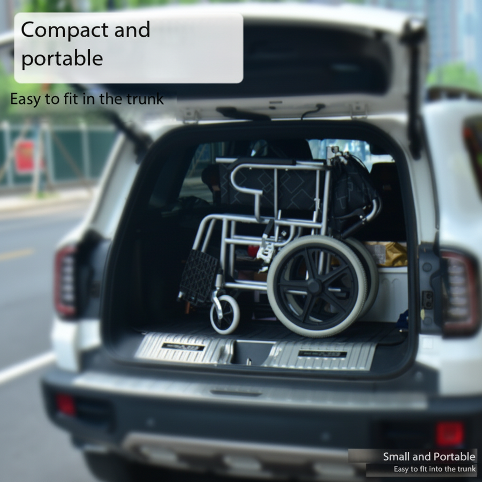 รถเข็นเหล็กพับได้24นิ้วสำหรับผู้ใหญ่รถเข็นโรงพยาบาลน้ำหนักเบาอเนกประสงค์พับได้24นิ้ว