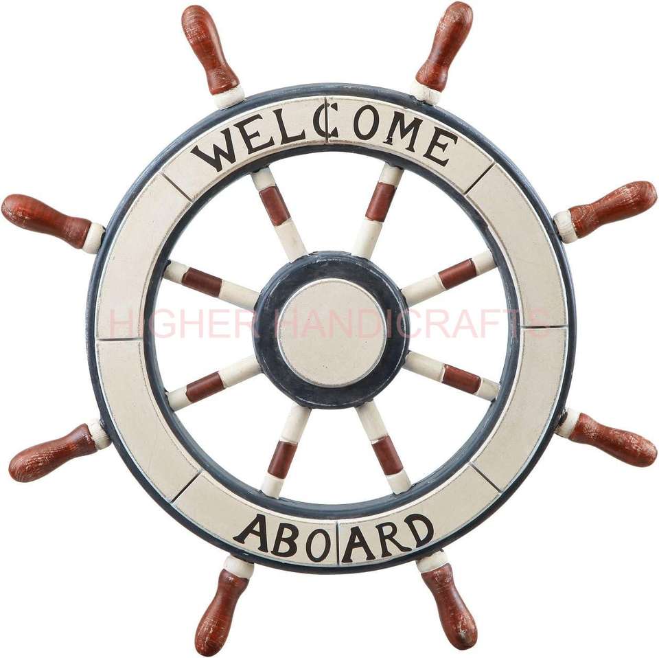 สมอเรือไม้ขนาด 24 นิ้ว พร้อมพวงมาลัยตกแต่งบ้าน รูปทรงเรือ สีขาว ดำ น้ำตาล