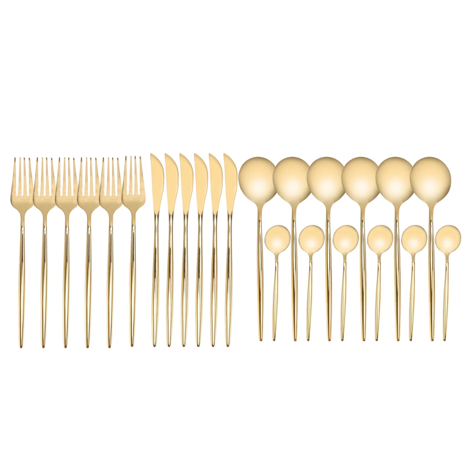 ชุดช้อนส้อมเครื่องใช้บนโต๊ะอาหารทองเหลือง24ชิ้นสำหรับงานแต่งงานงานกิจกรรมอื่นๆมิเรอร์เหล็กสำหรับบ้านห้องครัวโรงแรมร้านอาหารชุดเครื่องใช้บนโต๊ะอาหาร