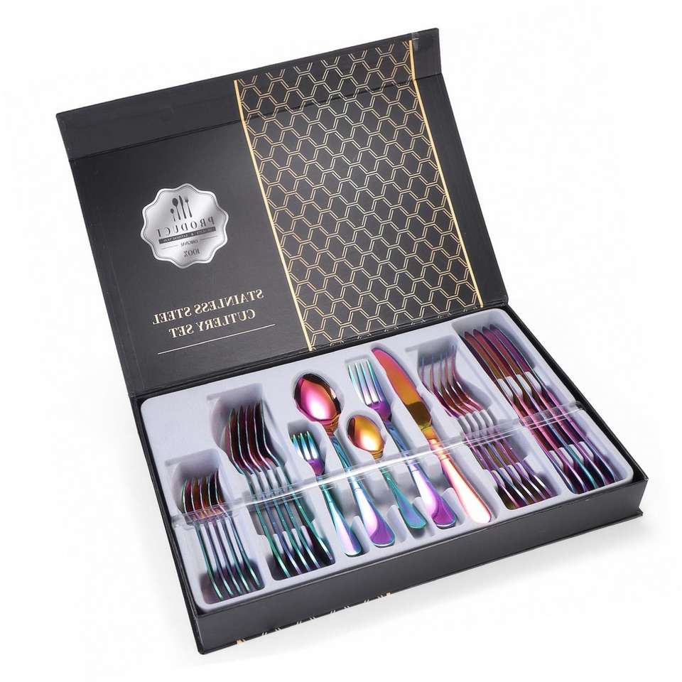 24pcs Western Tableware Set Colorful 304 Stainless Steel Cutlery Set