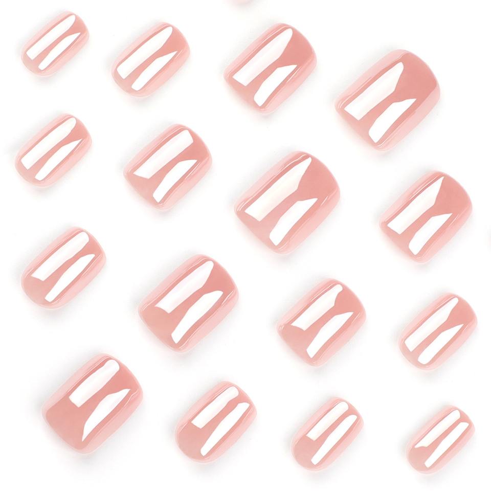 เล็บปลอมอะคริลิกสำเร็จรูปทรงอัลมอนด์สีชมพูสไตล์ฝรั่งเศส ขนาดกลาง จำนวน 24 ชิ้น