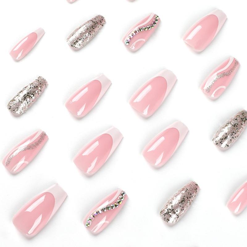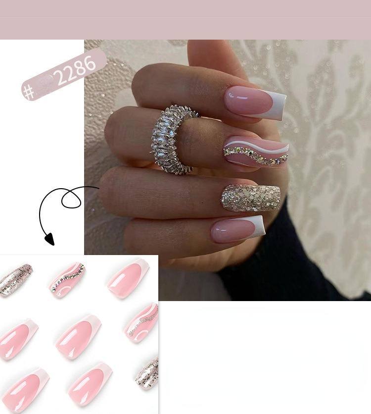 เล็บปลอมอะคริลิคแบบกดติด 12 ชิ้น สไตล์ฝรั่งเศส โรแมนติก ศิลปะสวยงาม ได้รับการรับรองมาตรฐาน CE รูปทรงอัลมอนด์ครึ่งเล็บ ติดกาวได้ ปรับแต่งได้