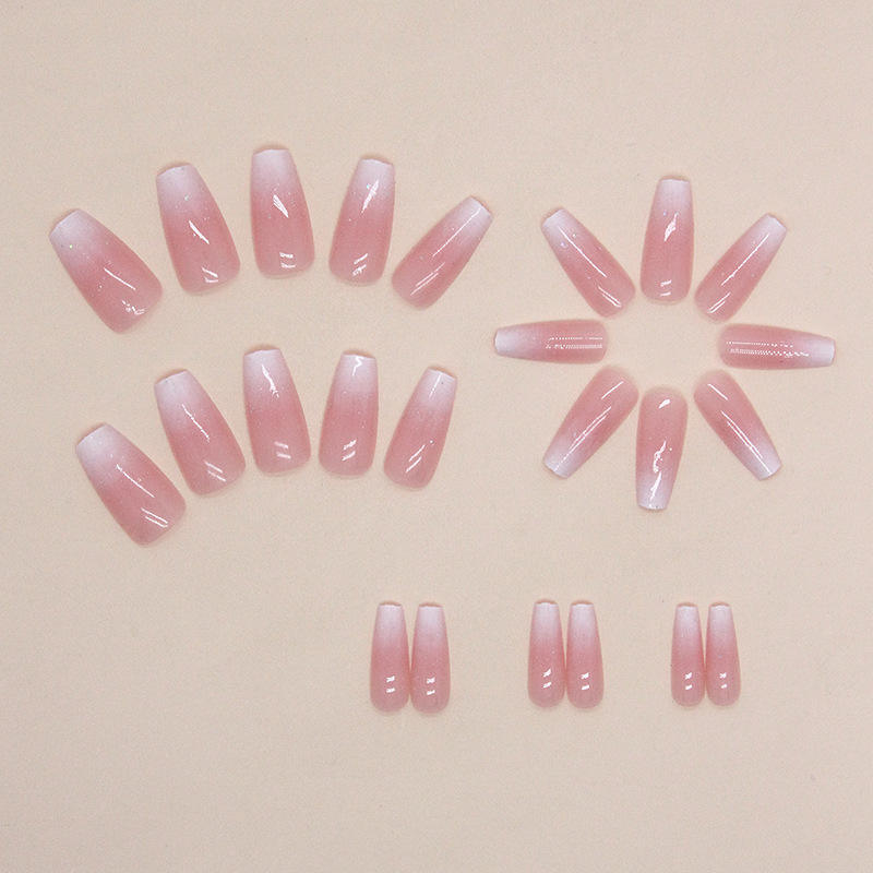 24ชิ้นสีชมพูนู้ดแบบไล่ระดับสีเล็บนักบัลเล่ต์เล็บเทียมมันวาวแต่งเล็บแบบใช้ซ้ำได้ปลายเล็บปลอม