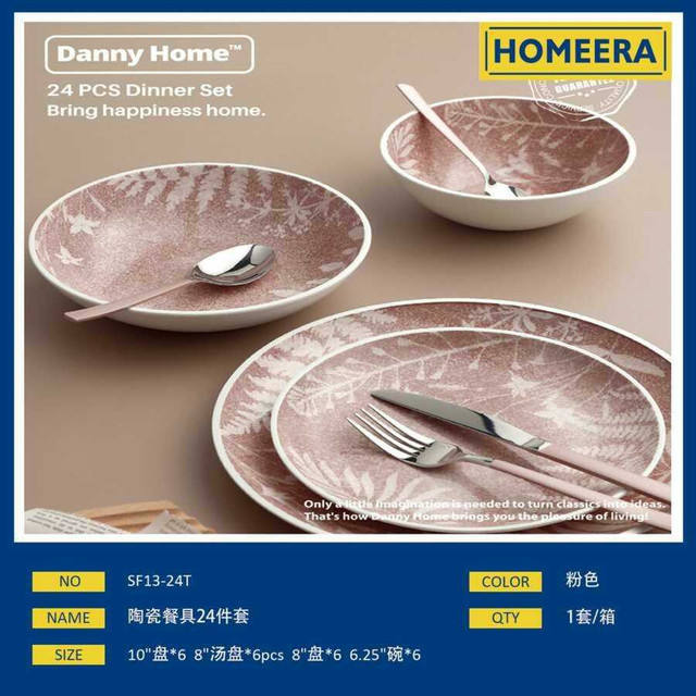 24-Piece Elegant Ceramic Dinner Set Porcelain Tableware Including Plates and Bowls for Dining