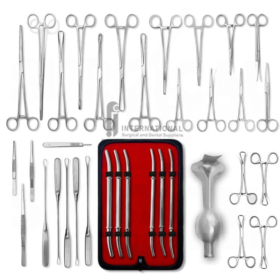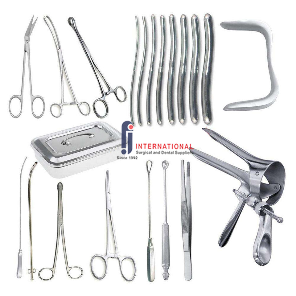 ชุดเครื่องมือผ่าตัดตามหลักวิทยาแบบพรีเมี่ยม24ชิ้นทำจากสเตนเลสสตีลใช้สำหรับขูดมดลูกด้วยมือเครื่องดึงถุง