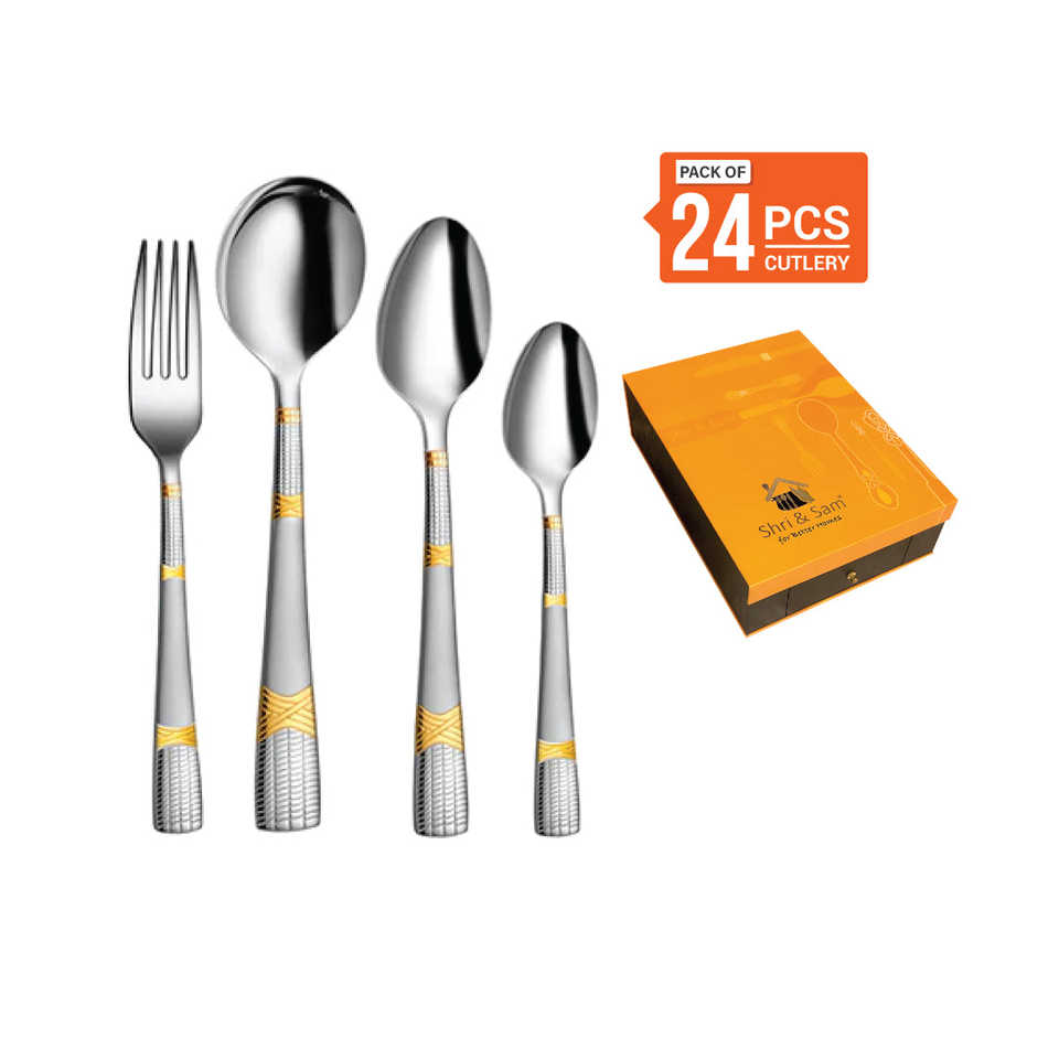 ชุดช้อนส้อมสแตนเลส24ชิ้นรวมทั้งช้อนซุปขนมหวานสีเขียวชอุ่ม