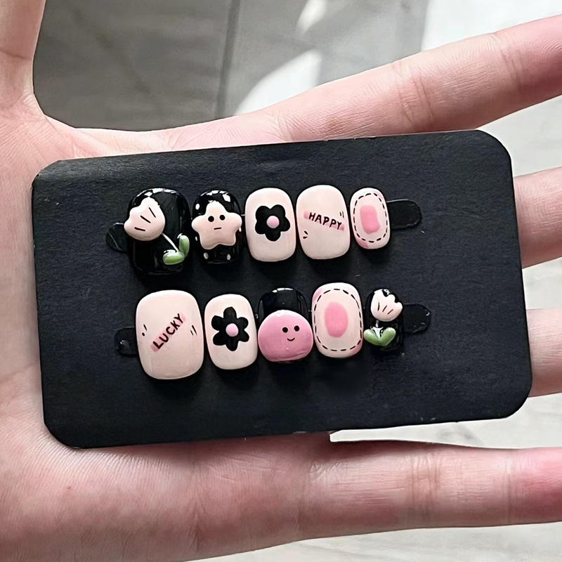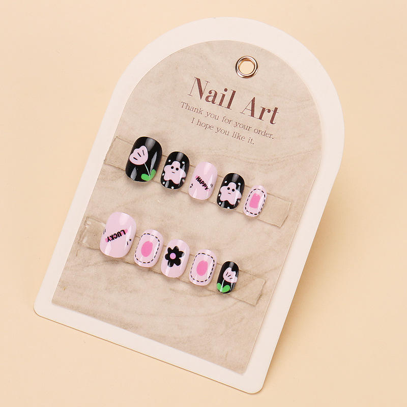 24ชิ้นการ์ตูนถอดออกได้ปลายเล็บปลอมลายดอกไม้น่ารักสำหรับเด็กผู้หญิงตกแต่งเสร็จ
