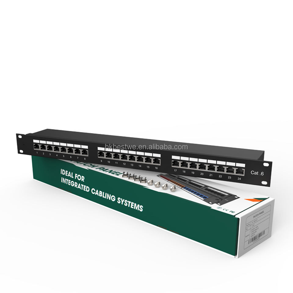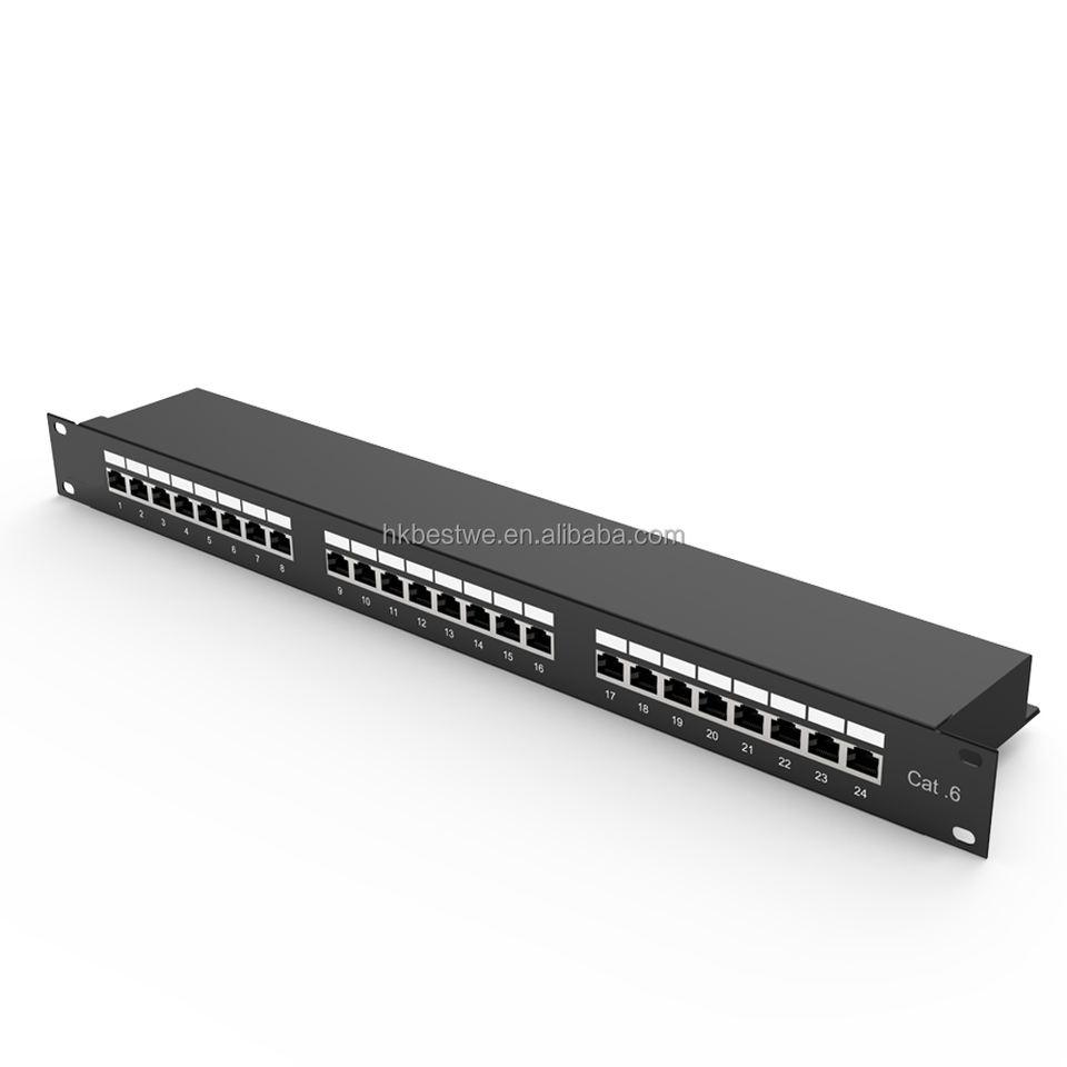 แผงแพทช์ทองแดง FTP ป้องกัน Cat.6 24พอร์ต1U ตัวเรือนโลหะ19''