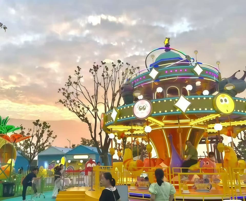 ม้าหมุนกลางแจ้งสุดหรู24ที่นั่งสำหรับเด็ก, ระบบม้าหมุนแนวตั้ง Kardex กล่องดนตรีกระเป๋าเดินทางสนามบินรถโรตารี่ที่จอดรถปาร์ตี้