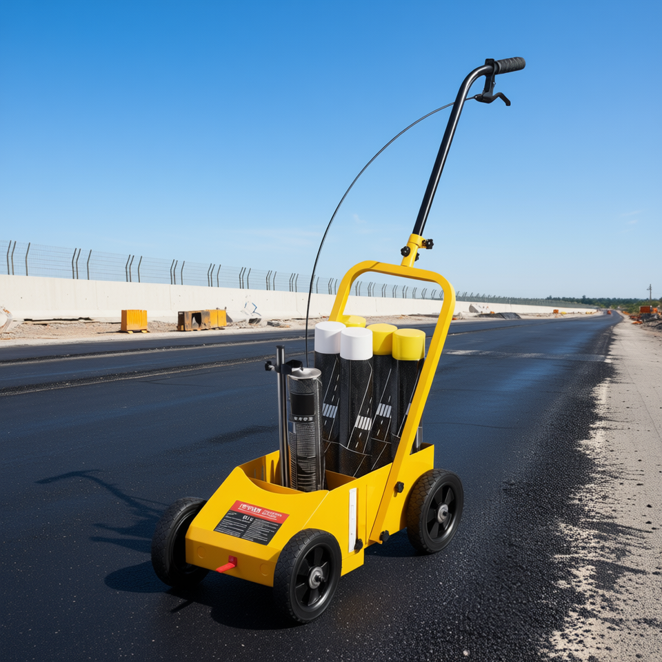 เครื่องทำเครื่องหมายถนนเวทอร์ ขนาด 24 x 13 x 35.4 นิ้ว แบบ 4 ล้อ พร้อมถังเก็บสีเหลือง ดีไซน์กะทัดรัด