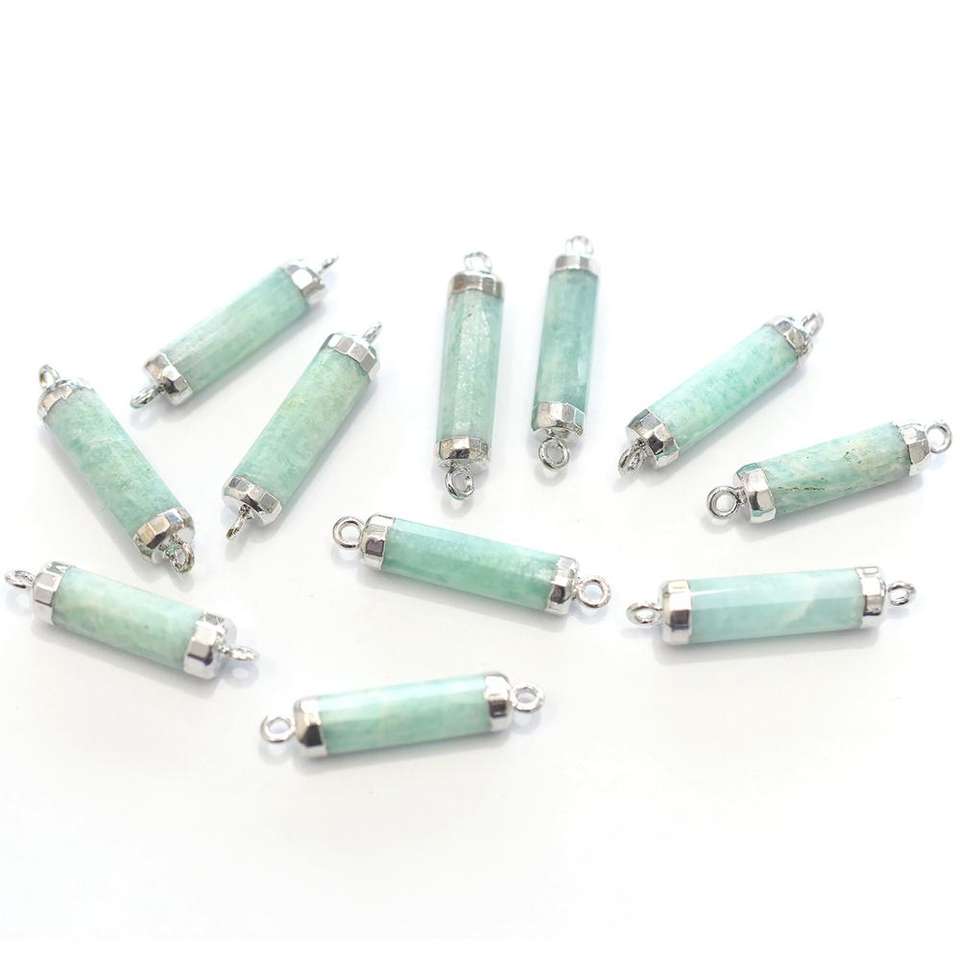 ชื่อสินค้า:อะเมซอนไนต์ ขนาด 24-26 มม. พร้อมห่วงคล้อง รูปทรงหลอด ชุบเงิน