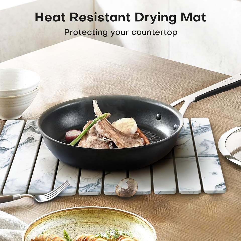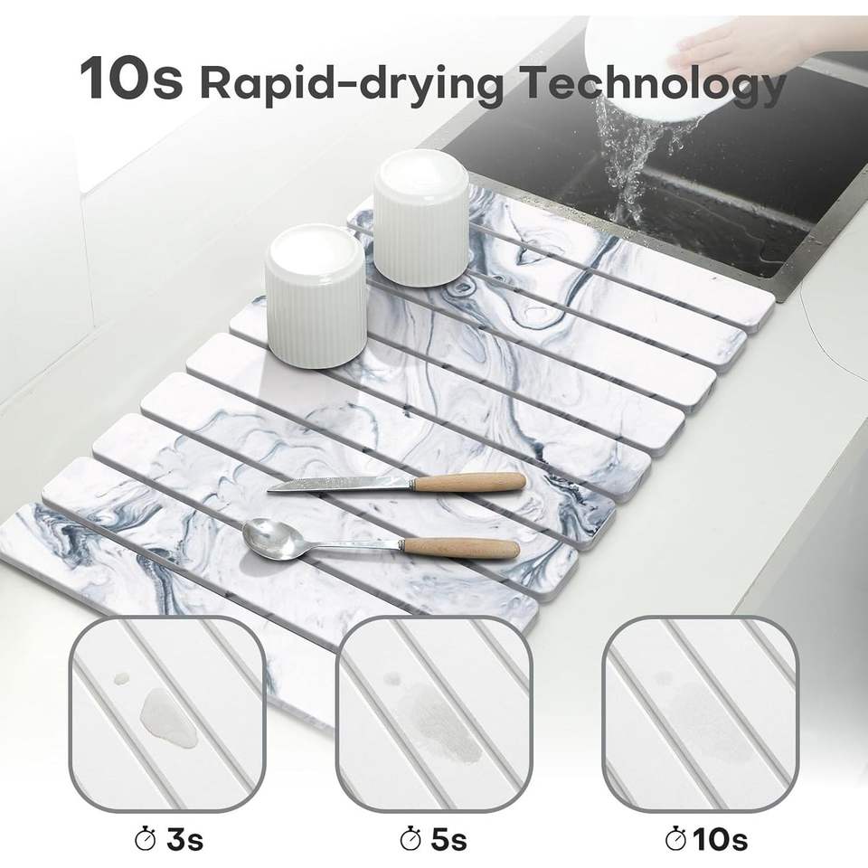 แผ่นรองจานทำจากหินไดอะตอมมาเชียสลายหินอ่อนพับได้24 "x16" ภาชนะสำหรับเคาน์เตอร์ครัวแบบแห้งเร็ว