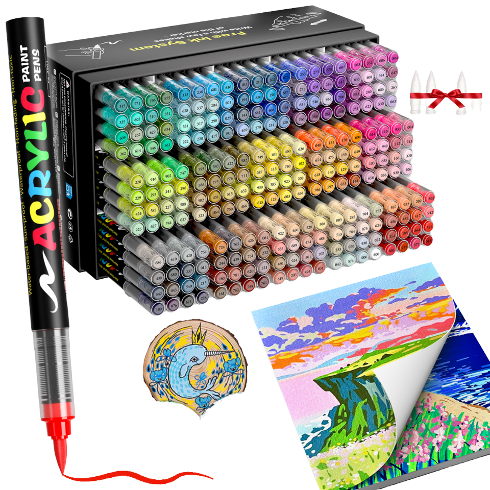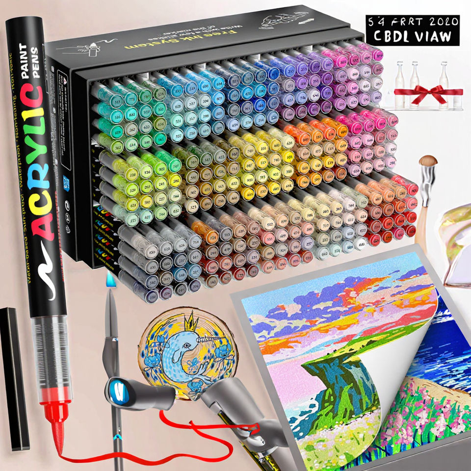 ปากกามาร์กเกอร์สีอะคริลิคแบบถาวร6มม. ปากกาหัวแปรงแบบเฉียงพลาสติกสำหรับกระดาษไม้หินผ้าใบแก้วลบได้240สี