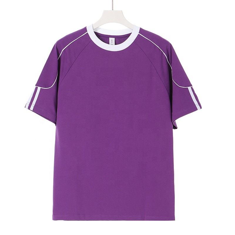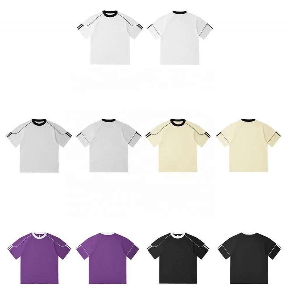 เสื้อยืดแร็กแลนลายทางตัดสีสไตล์เรโทรแฟชั่นสตรีทแวร์ลำลองสำหรับผู้หญิงและผู้ชาย ผ้าฝ้าย 100% หนัก 240 แกรม