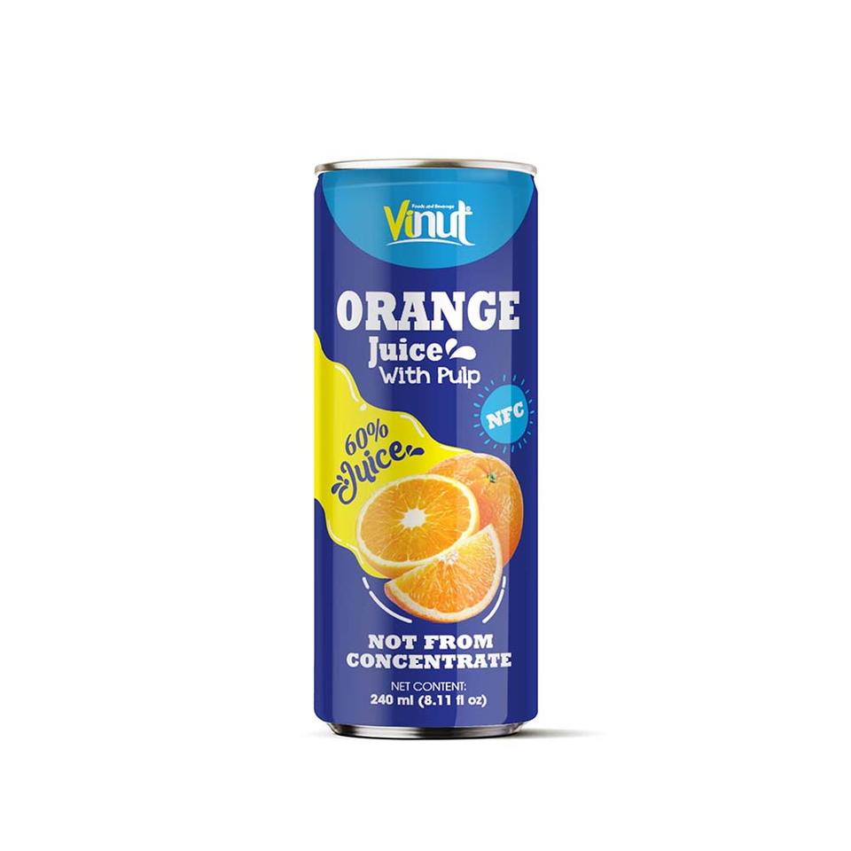 น้ำส้มกระป๋องพรีเมี่ยมขนาด240มล. พร้อมเยื่อกระดาษ (เพิ่มวิตามินซีไม่มีน้ำตาลเพิ่มศูนย์แคลอรี่) จากน้ำผลไม้จริง