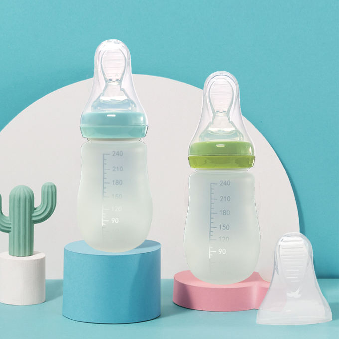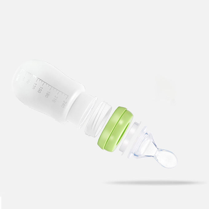 ขวดซิลิโคนแบบนิ่มสำหรับป้อนอาหาร240มล. ช้อนช้อนสำหรับเด็กวัยหัดเดินขวดใส่ข้าว