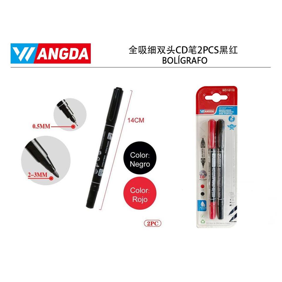 2411-2ปากกา CD สองหัวดูดเต็ม2ชิ้นสีดำและสีแดงปากกามาร์กเกอร์เขียนไม้กว้าง6มม.
