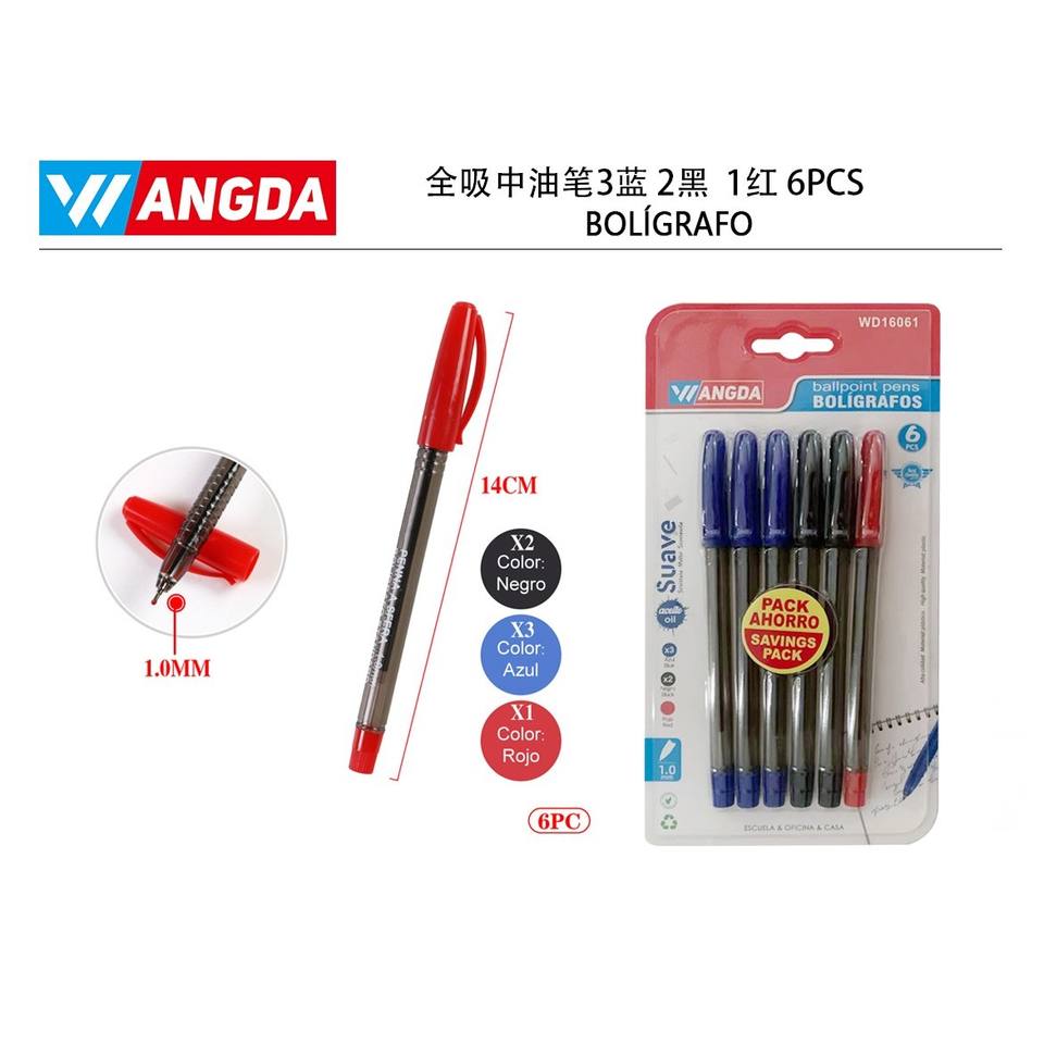 ปากกาลูกลื่น2413น้ำมันดูดเต็ม3สีฟ้า2สีดำ1สีแดง6ชิ้น