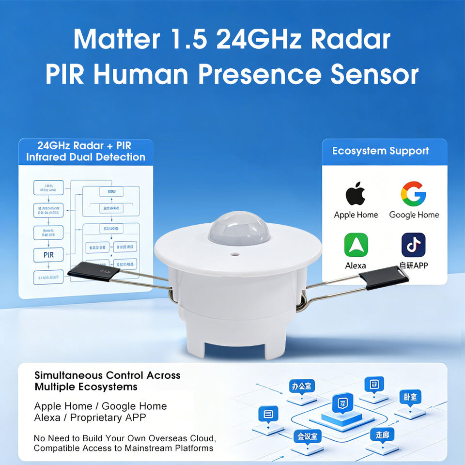 เซ็นเซอร์ตรวจจับความเคลื่อนไหวด้วยเรดาร์ 24GHz สำหรับตรวจจับการมีอยู่ของมนุษย์ ระบบสมาร์ทโฮม ความไวสูง เรดาร์ MmWave รุ่น RD24-10 สำหรับห้องน้ำและห้องนอน รองรับ OEM ODM