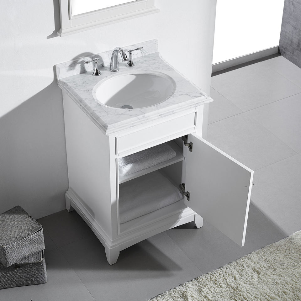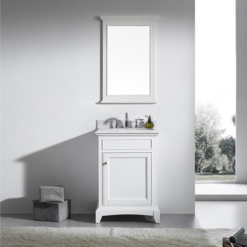 อ่างล้างหน้าเซรามิกแบบทรานซิชั่นขนาด 24 นิ้ว ตู้ห้องน้ำไม้จริงผสมไม้อัด ลิ้นชักปิดแบบนุ่มนวล อ่างเซรามิก ผลิตในเวียดนาม