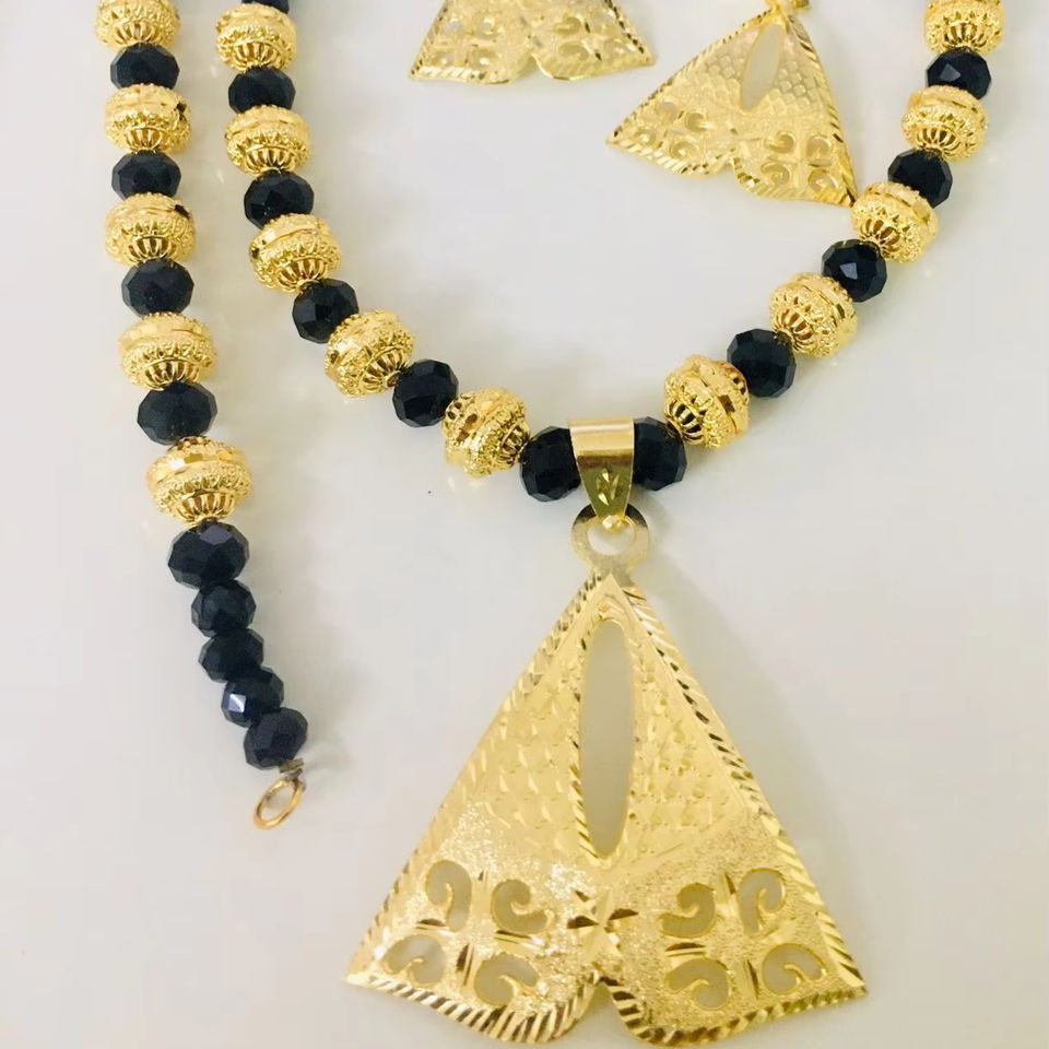ชุดเครื่องประดับแฟชั่นดูไบวินเทจ24K ชุดต่างหูกำไลข้อมือเข็มกลัดวัสดุทองแดงจากเยอรมนีของขวัญประดับเพชร