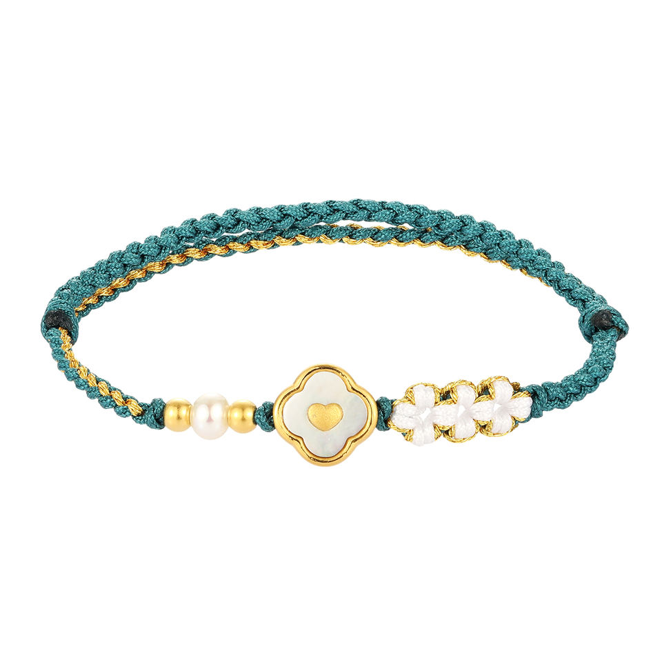 สร้อยข้อมือลูกปัดทองแท้24K สร้อยข้อมือลูกปัดถักมุกรูปดอกไม้เครื่องประดับสุดสวยสไตล์ชนเผ่าของขวัญครบรอบเพศ
