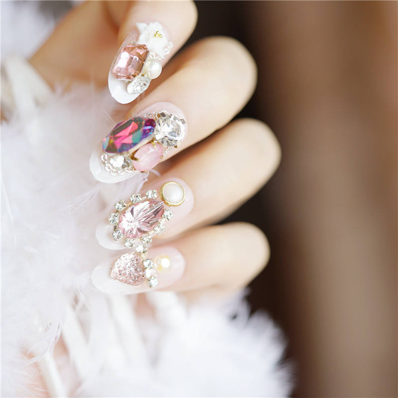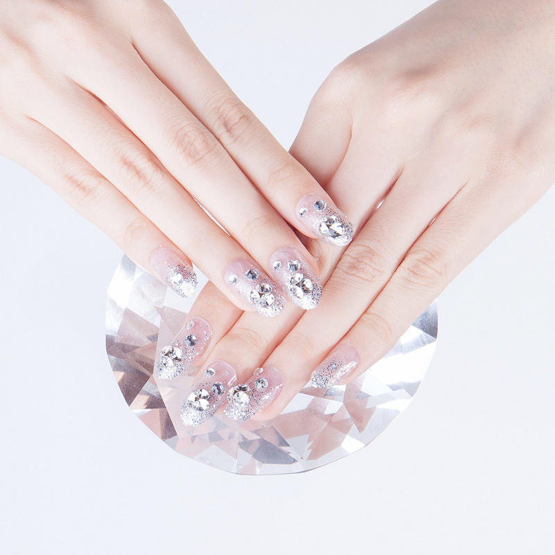 เล็บปลอมสำหรับงานแต่งงานประดับพลอยเทียมระยิบระยับหรูหรา,มงกุฏทรงสี่เหลี่ยมแบบสั้นงดงามสำหรับเจ้าสาวจำนวน24ชิ้น