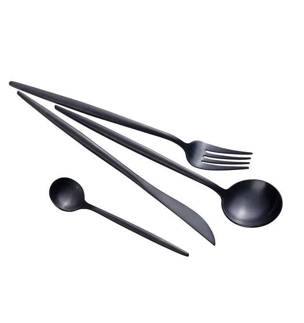 ชุดช้อนส้อมมีดช้อนส้อมมีดสีดำด้านทำจากเหล็กเคลือบเงา24ชิ้นพร้อมกล่องไม้