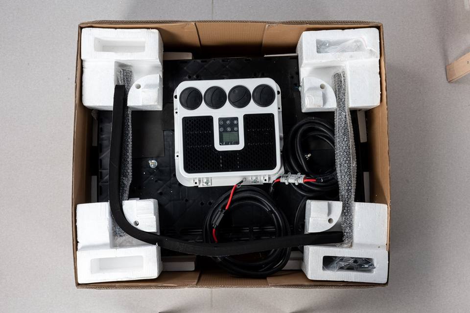 เครื่องปรับอากาศแบบใช้แบตเตอรี่ 24V สำหรับรถยนต์ รถบรรทุก และรถตู้ติดหลังคา พร้อมกำลังทำความเย็น 2400 วัตต์