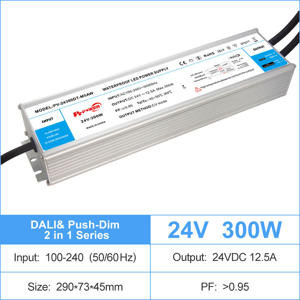 300W CV DALI Push 2 in 1 Flicker Free Dimmable LED Driver 100-240V/170-264VAC DC 24V 48V IP67 Waterproof LED Power Supply Single