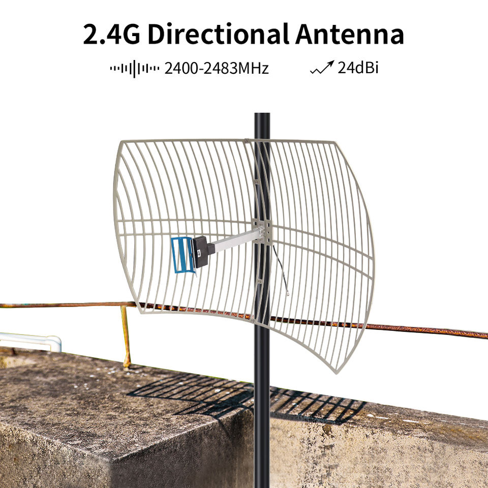 24dbi รับน้ำหนักได้สูง2กม. กลางแจ้ง2.4GHz เสาอากาศไวไฟสำหรับสื่อสารยาว2กม. แบบโค้ง