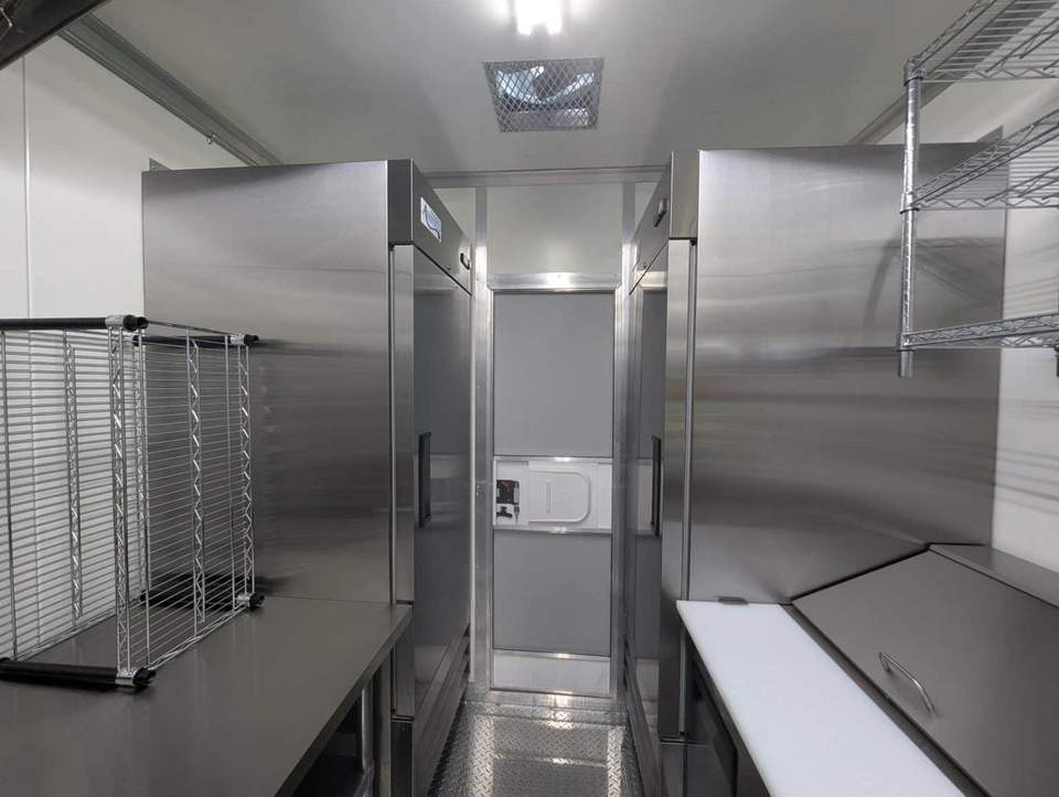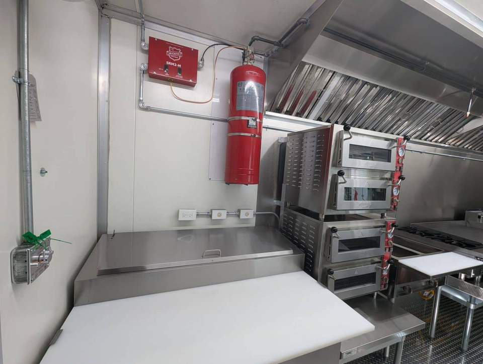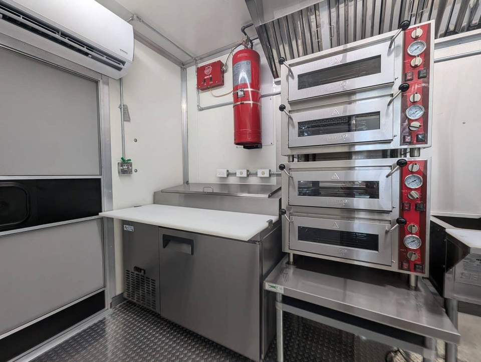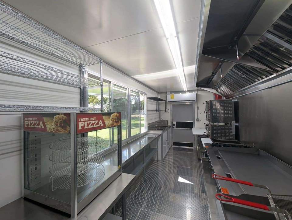รถพ่วงครัวพร้อมอุปกรณ์ 24 ฟุต สำหรับขายพิซซ่าและปีกไก่