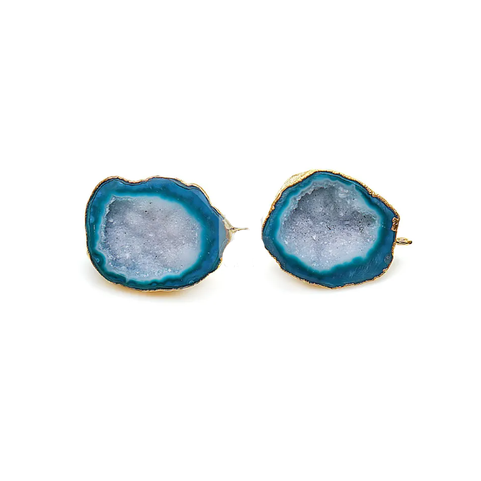 ทองคําชุบไฟฟ้า 24k ทีนทูล รอบสีน้ําเงิน ไม่สม่ําเสมอ เบลเดี่ยว Geode ชิ้นกระดุมอาเกต