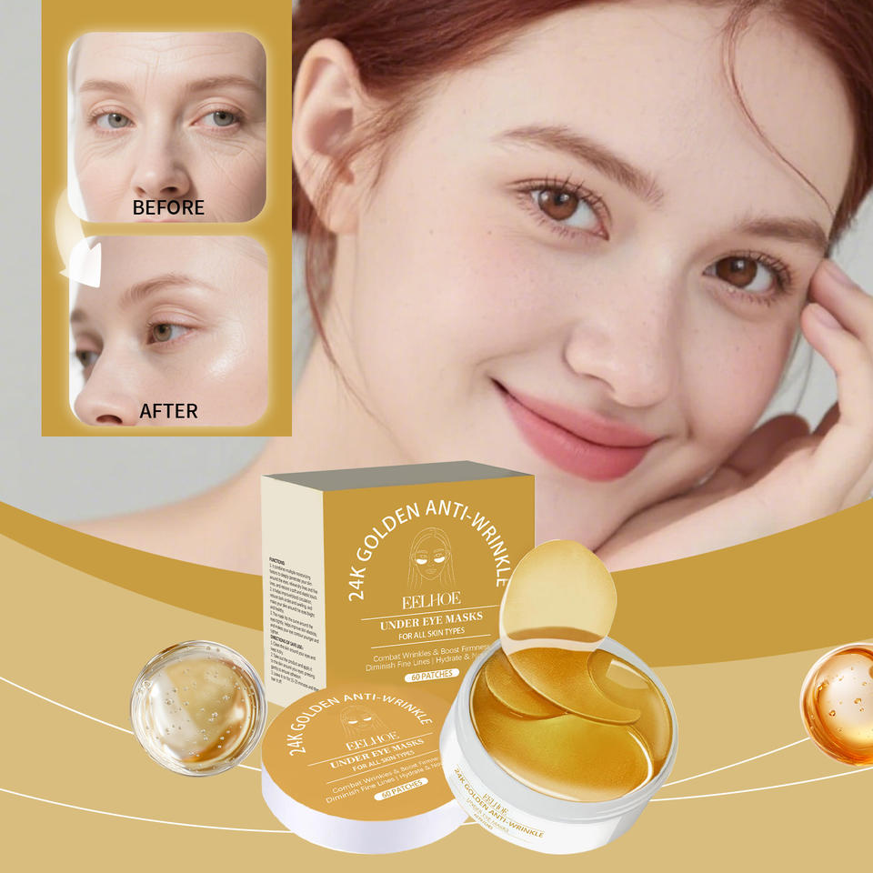 24k Gold Firm Eye Mask 60pcs Oem Private Label Hydrate Collagen Brighten Dark Circle