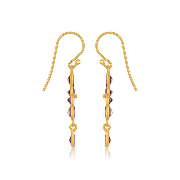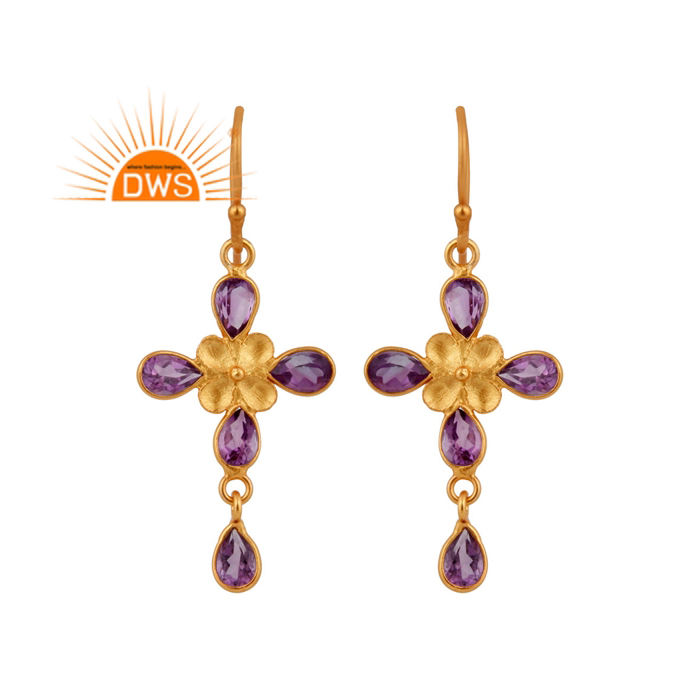 ต่างหูห้อยประดับคริสตัลอเมทิสต์ทรงกากบาทชุบทอง 24k ดีไซน์สวยหรู พร้อมกรอบเงิน จากผู้ผลิตเครื่องประดับ