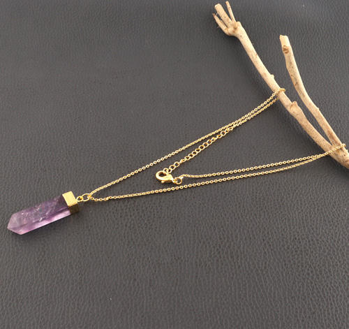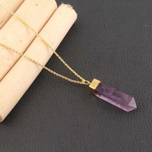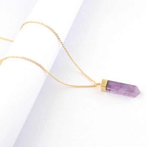 สร้อยคอทองเค24K รูปดินสอสีม่วงธรรมชาติอเมทิสต์จี้สร้อยคอหินประจำเดือนเกิดเครื่องประดับแฟชั่นสำหรับผู้หญิงขายส่ง