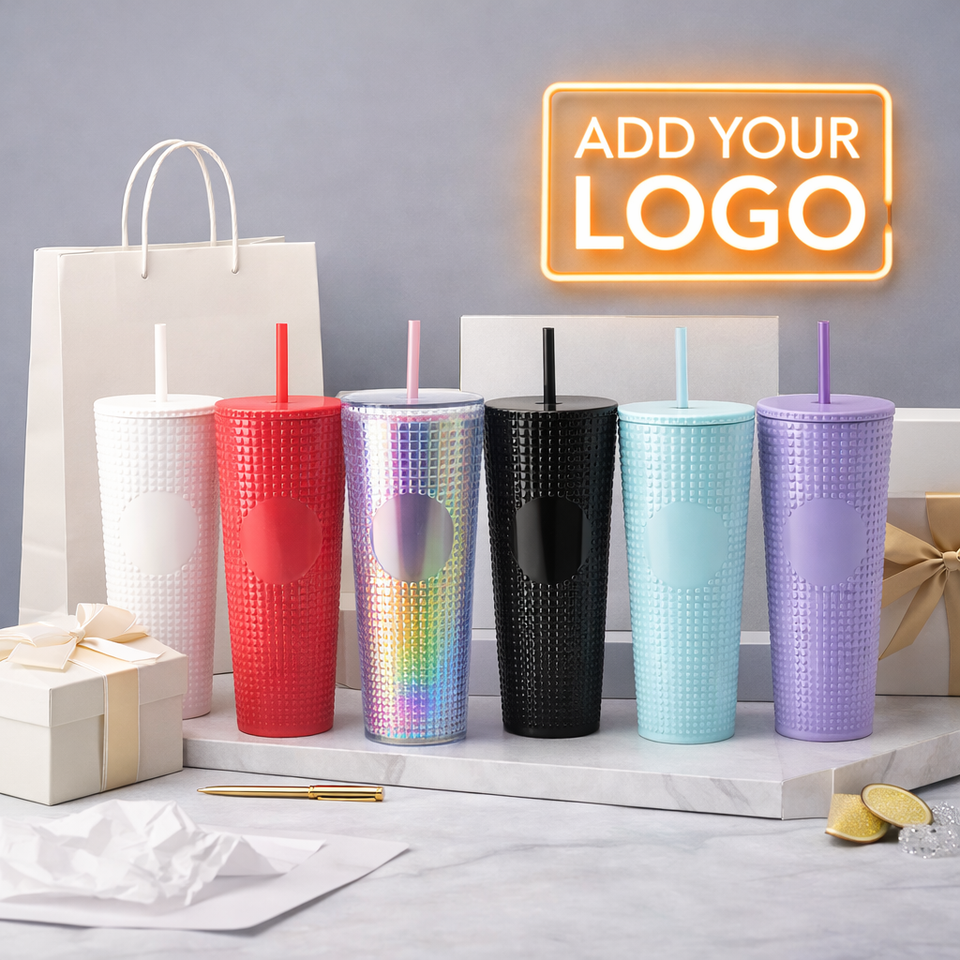 แก้วน้ำพลาสติกแบบมีฝาปิด ขนาด 24 ออนซ์ 710 มล. สีทอง เงิน ม่วง ตกแต่งด้วยฟอยล์เคลือบสี ผนังสองชั้น พร้อมหลอด