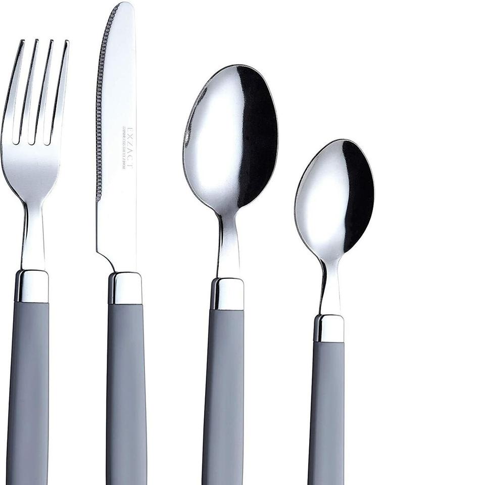 ชุดช้อนส้อมสแตนเลสแบบประหยัด 24 ชิ้น ดีไซน์ทันสมัย พร้อมที่แขวน มีด ส้อม ช้อน ขาตั้งโลหะ ขัดเงา ราคาประหยัด