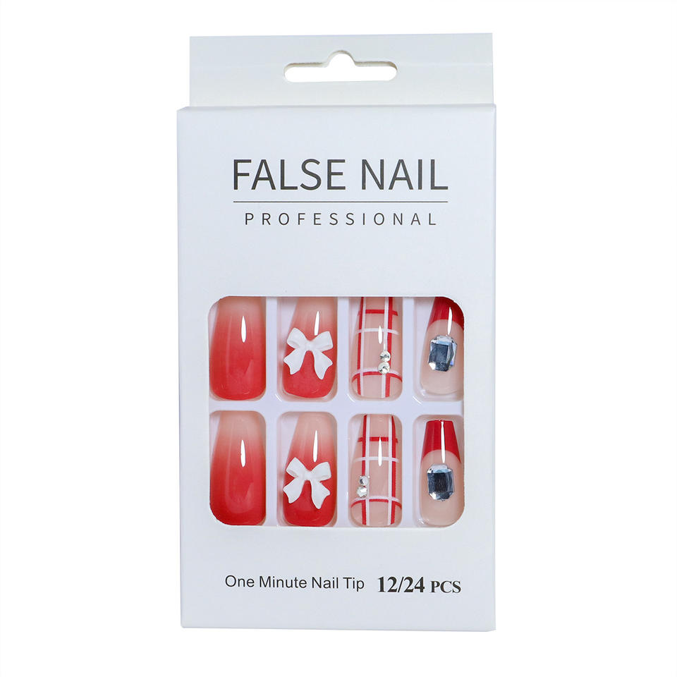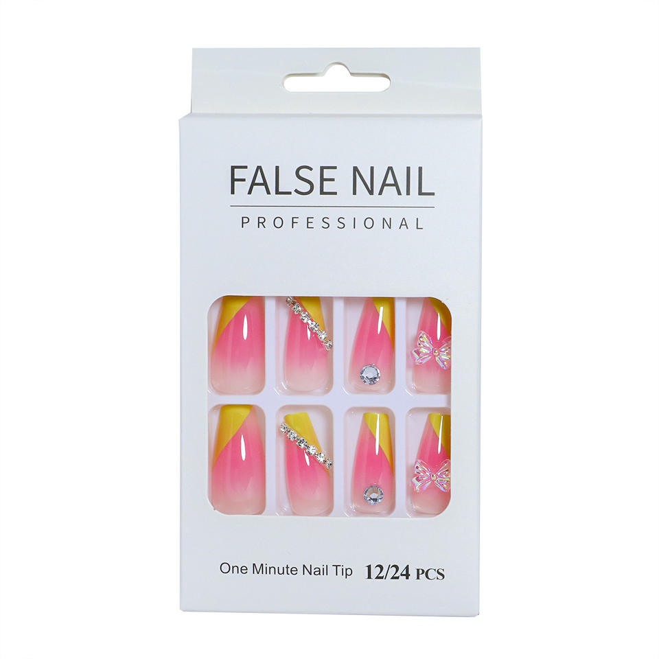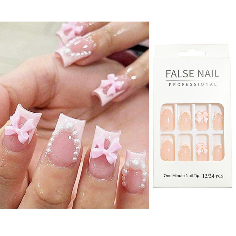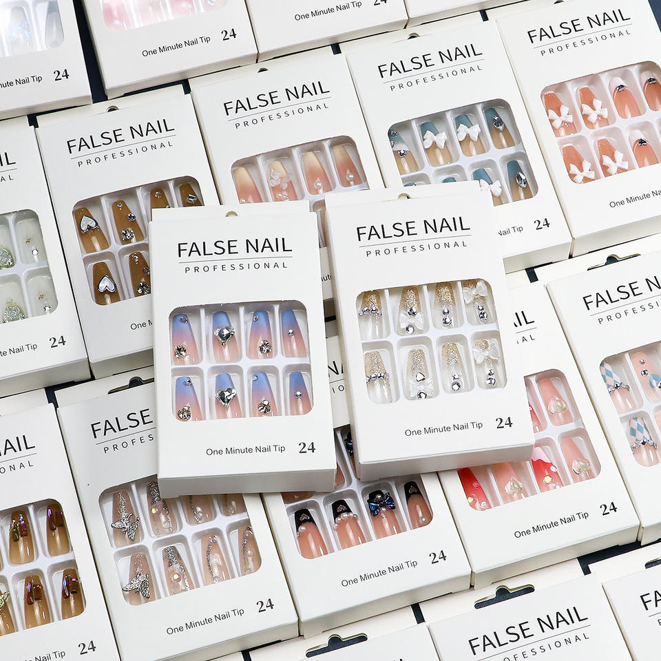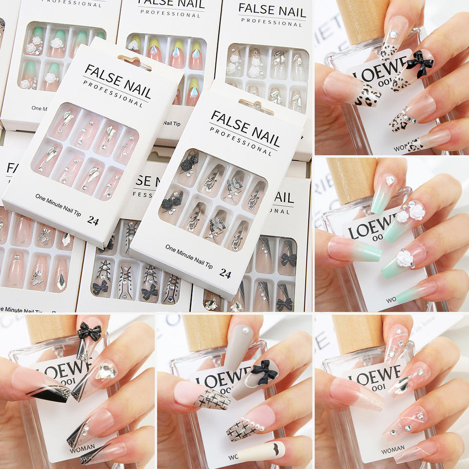 เล็บปลอมขนาดกลางทำด้วยมือ24ชิ้น/กล่องได้รับการออกแบบให้กดบนเล็บปลอมดีไซน์สวยใช้ทุกวัน
