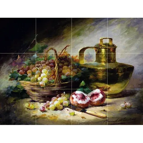 24x18ศิลปะผนังครัว backsplash-ชีวิตกับองุ่นและลูกพีชประเภทภาพวาดจิตรกรรมฝาผนังกระเบื้อง