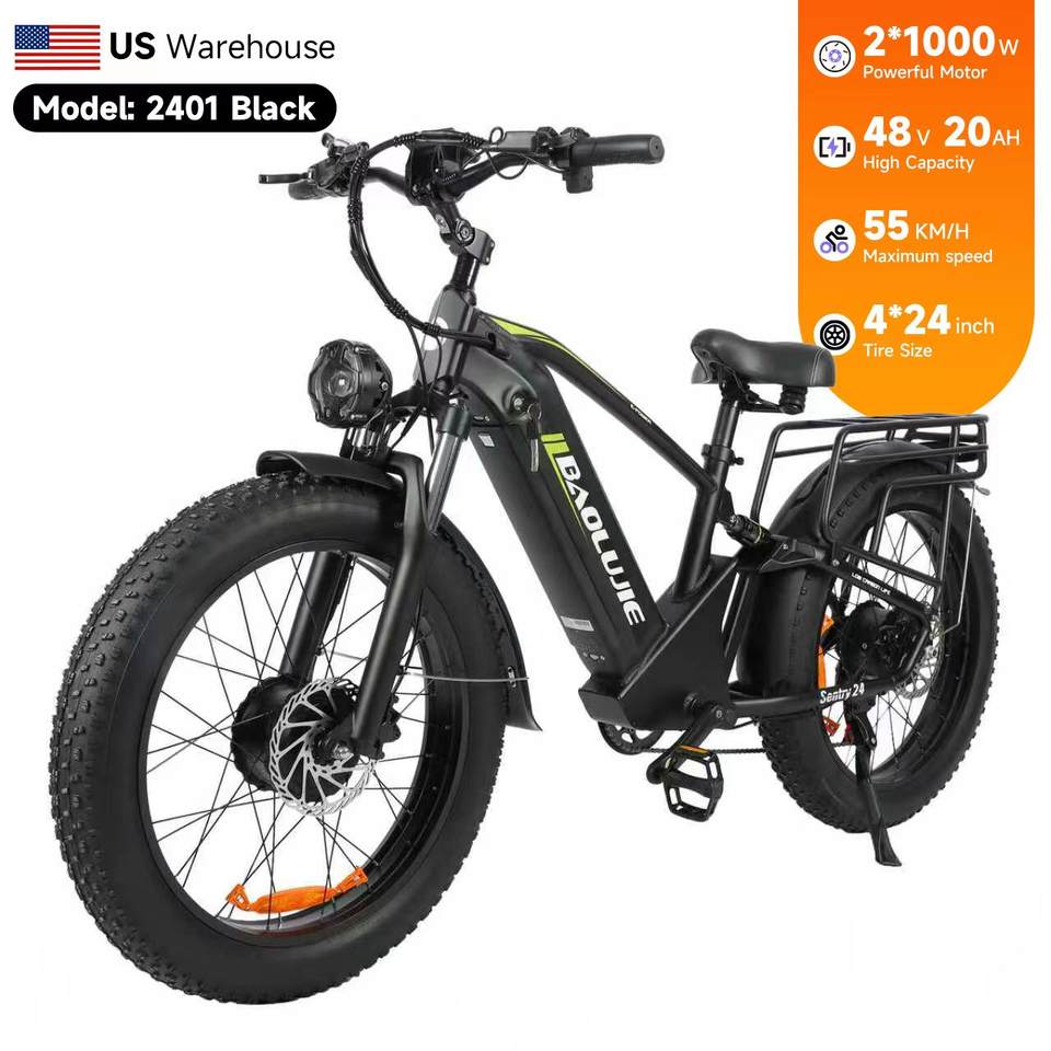24x4.0 Inch Fat Tire E-Bike DP-2401 2000W Dual Motor 48V20AH Battery Brake 7-Speed Frame Oil Fork Electric Bicycle