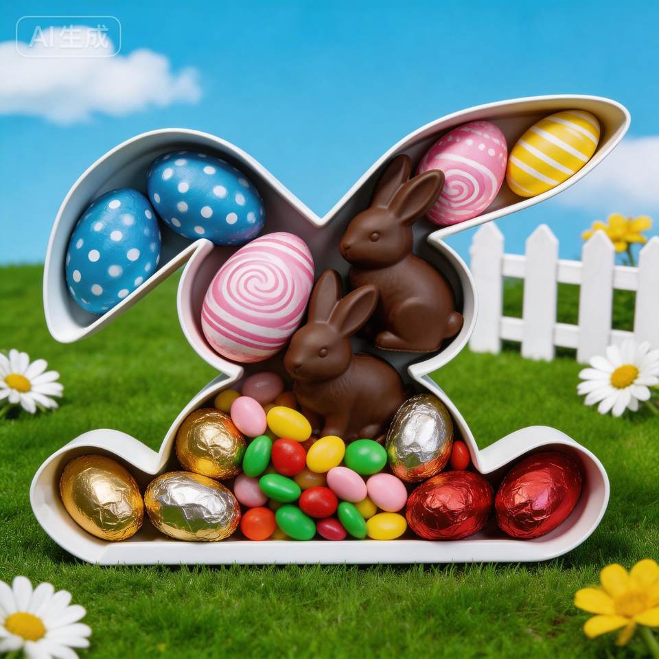 ถาดพลาสติกใส่ขนมรูปกระต่ายอีสเตอร์ขนาด 25.4 ซม. สำหรับใส่ช็อกโกแลต เยลลี่ คุกกี้ หรือขนมหวานอื่นๆ