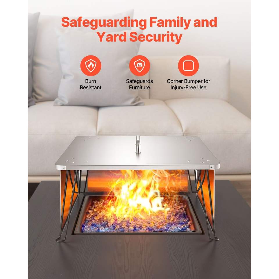 แผ่นกันความร้อนสำหรับเตาไฟสี่เหลี่ยมสแตนเลส ขนาด 25.4x25.4x14.6 นิ้ว สำหรับใช้กลางแจ้ง สำหรับกองไฟ แคมป์ปิ้ง เผาไม้ พร้อมฝาปิด