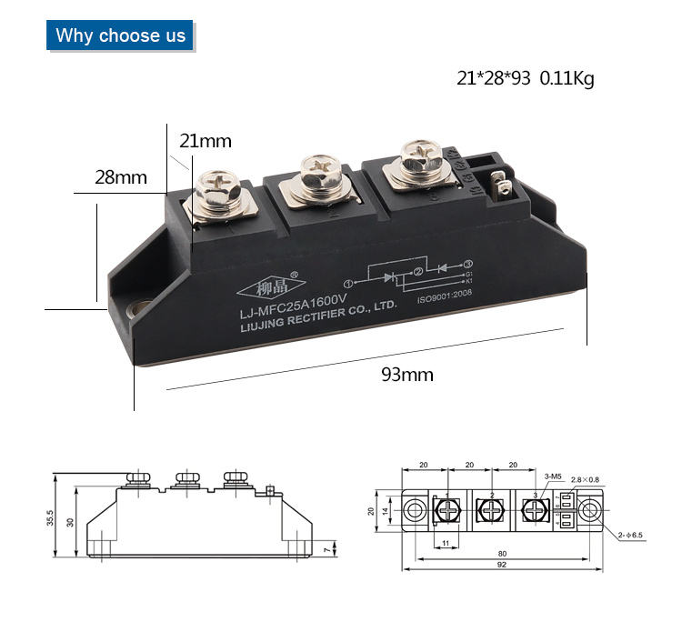 25แอมป์ SCR ไทริสเตอร์ไดโอดโมดูล1600โวลต์ MFC25A