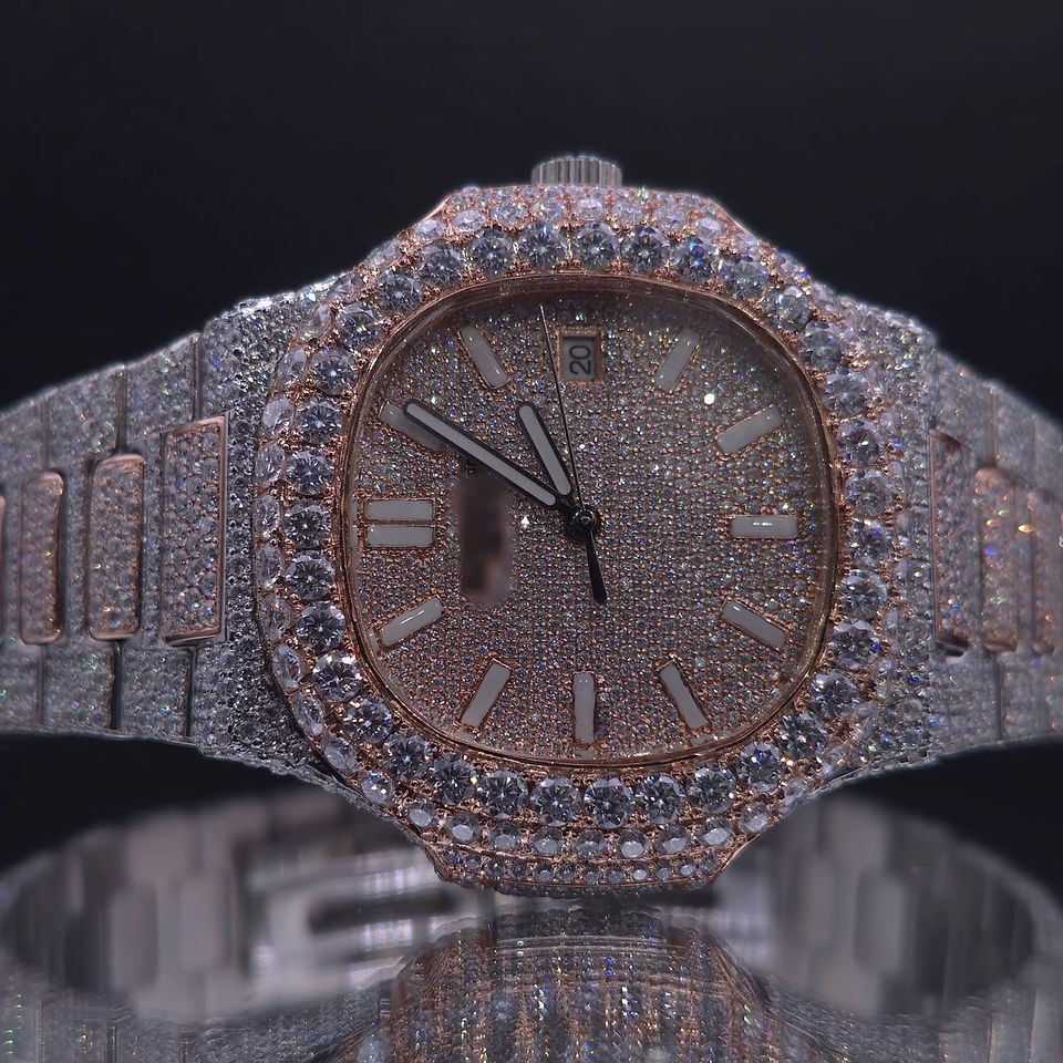 นาฬิกาข้อมือผู้ชาย 25 กะรัต VVS มอยส์ซาไนต์ ออโตเมติก หรูหรา สปอร์ต แฟชั่น ประดับเพชร หน้าปัดกระจก ฮิปฮอป ควอตซ์ สแตนเลสสตีล อนาล็อก