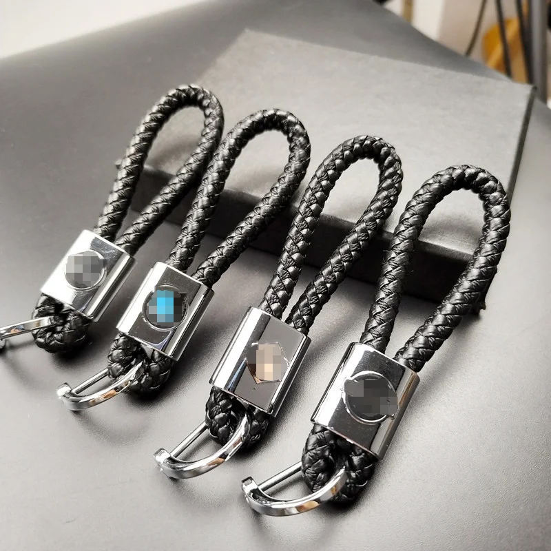 พวงกุญแจโลหะสานด้วยมือ25สีพวงกุญแจหนังทำด้วยมือโลโก้รถยนต์แบบกำหนดเอง